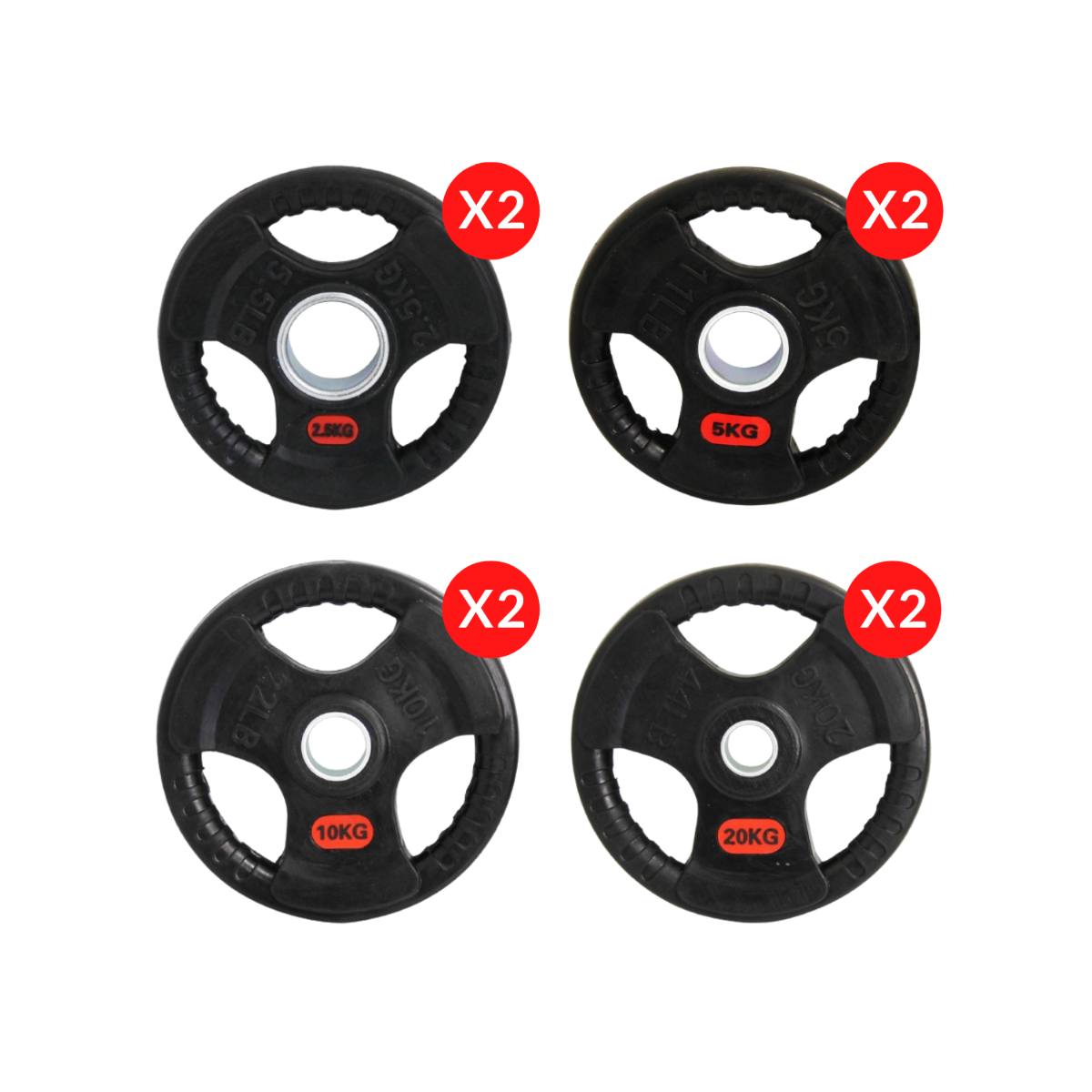 The combo includes 2 x 2.5kg | 2 x 5kg | 2 x 10kg | 2 x 20kg weight plates.