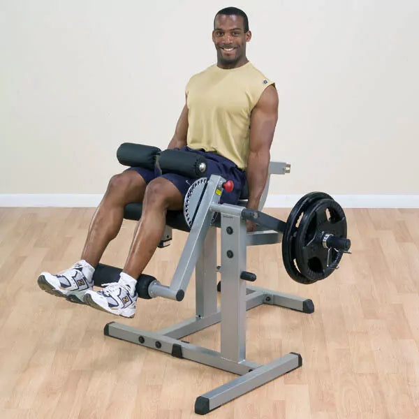 Leg workouts have never been so quick and efficient with the Body-Solid CAM Leg Extension Leg Curl Combo. The two most important leg exercises can now be performed from one comfortable position. Pull the pin again to lower the lifting arm and position your legs behind the oversized rollers to work the quadriceps muscles through a leg extension exercise. The weight post is 1" in diameter.