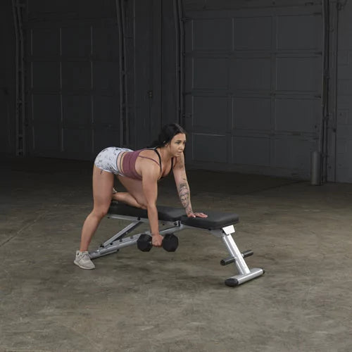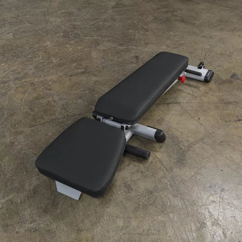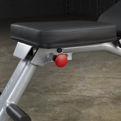 The Body-Solid GDFID225 Multi-Bench is the perfect training partner - functional, compact, portable, and durable. It requires no assembly and is designed to be used straight out of the box. Features include seven adjustment positions for flexibility and comfort. The 2” x 4” oval tubing ensures durability and support for the heaviest of workouts. Built-in wheels make transport quick and easy, and it folds flat for storage under a bed or on end in a closet.