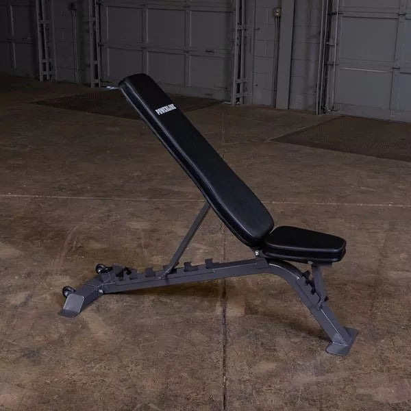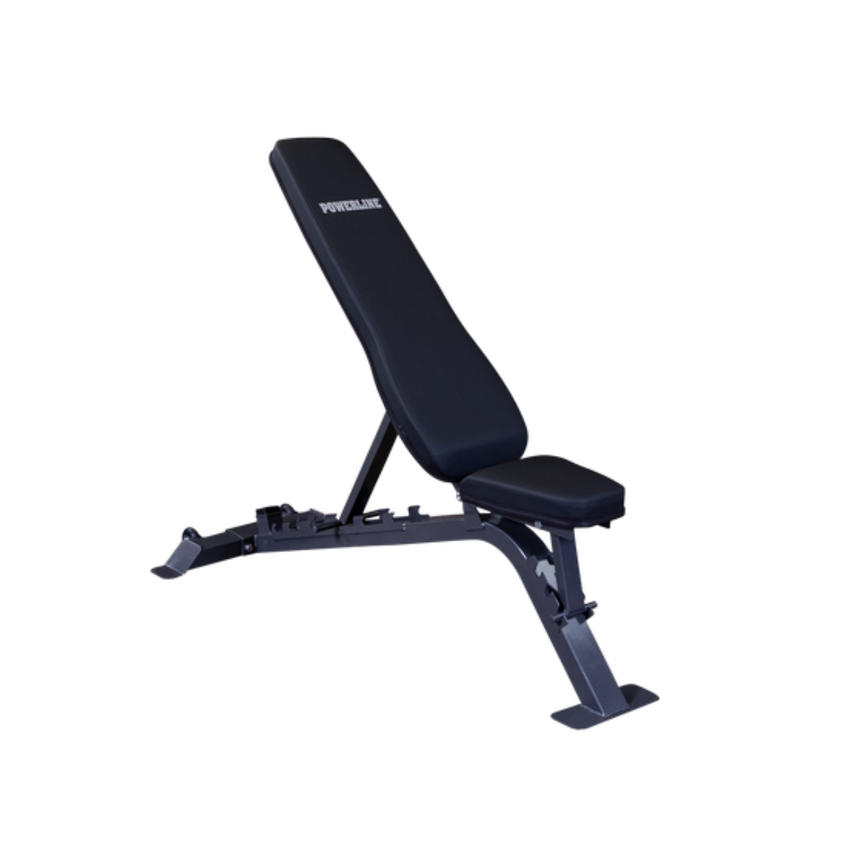 Powerline by Body-Solid’s PFI150 Flat/Incline Bench is designed for use in home, garage and basement gyms with an emphasis on workout variety thanks to independent ladder-style back (-18°, 0°, 15°, 30°, 45°, 60°, 80°) and seat pad (0°, 10°, 18°) adjustments. The PFI150 is an ideal tool for numerous bench-based dumbbell and barbell exercises including bench press, dumbbell row, shoulder press, incline press, skullcrushers, biceps curls and many more.