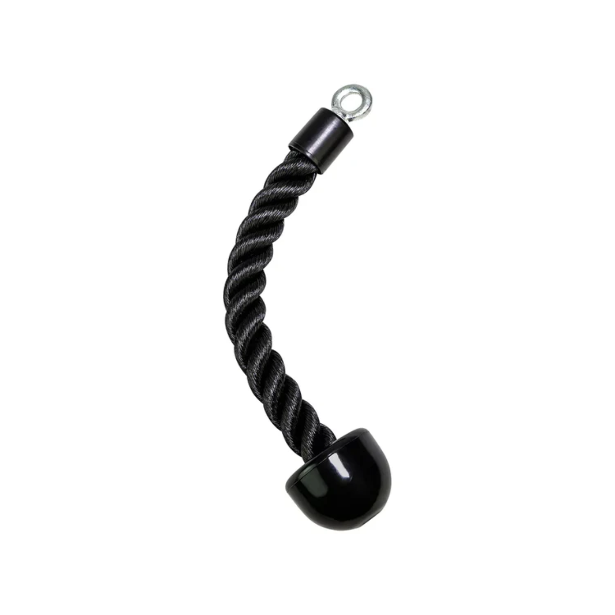 Our Single Tricep Rope Cable Attachment is one of our must-have accessories for any gym, PT studio, or sports facility. Tricep ropes are widely used for an array of tricep exercises and this rope fits on all standard carabiner clips. It has a heavy-duty, thick, black rope with oversized rubber stoppers.